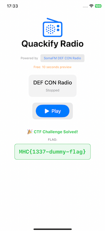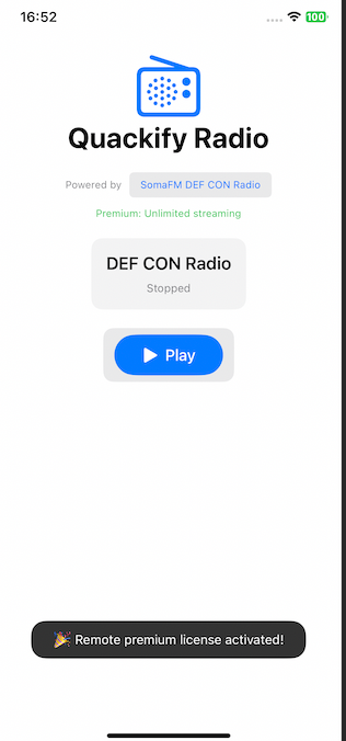 Description: Welcome to Quackify, a music streaming application with premium features locked behind a license validation system. Your mission is to unlock premium access to get the flag.